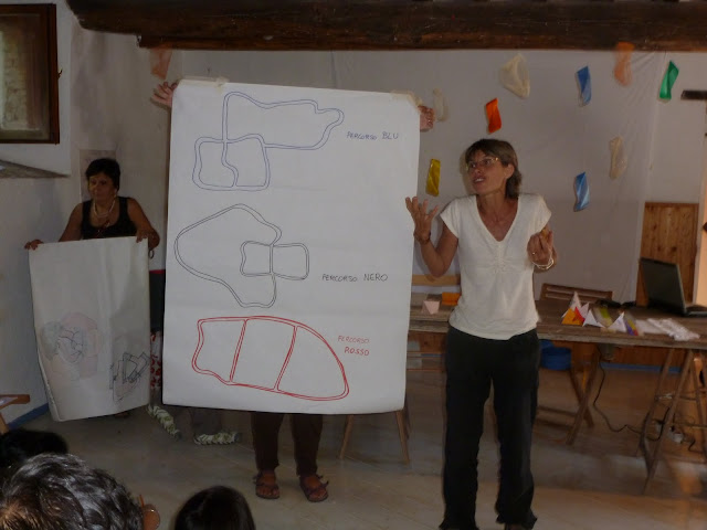 antonella - "..geometria senza metrìa perchè parlava della topologia, percorsi e le leggi di percorribilità alla storia con i famosi ponti e via avanti fino alle leggi di colorazione delle mappe il nastro di moebius con diverse applicazioni fino al problema delle tre case sul piano sul cilindro sul nastro e sul toro. Per finire la bottiglia di klein.."